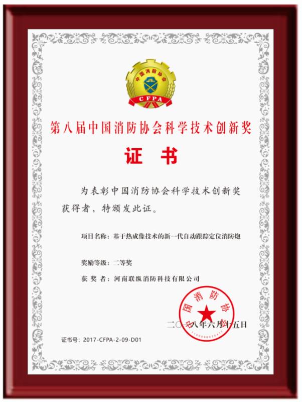 河南聯(lián)縱消防科技有限公司位于鄭州市高新區(qū)電子電器產(chǎn)業(yè)園,擁有專家團(tuán)隊(duì)和標(biāo)準(zhǔn)化工業(yè)廠房和實(shí)驗(yàn)場(chǎng),是一家以大空間智能消防水炮為主導(dǎo)的集科研、開發(fā)、生產(chǎn)、銷售、服務(wù)于一體的高科技消防設(shè)備制造企業(yè)。 公司以“極致產(chǎn)品安天下”為宗旨,針對(duì)市場(chǎng)上普通消防水炮精準(zhǔn)度差、易誤噴、不能實(shí)時(shí)追蹤動(dòng)態(tài)火源、適用場(chǎng)所受限等缺陷,歷時(shí)6年,成功研發(fā)出了第II代自動(dòng)跟蹤定位射流滅火裝置系列產(chǎn)品。公司已通過了IS09001:208、IS014001:2004、OHSAS18001:2007、GB/T29490-2013等體系認(rèn)證,獲得專利授權(quán)三十多項(xiàng),取得國(guó)家級(jí)高新技術(shù)企業(yè)、消防行業(yè)誠(chéng)信示范單位、消防科技創(chuàng)新企業(yè)、第八屆中國(guó)消防協(xié)會(huì)科學(xué)技術(shù)創(chuàng)新獎(jiǎng),產(chǎn)品通過國(guó)家消防裝備質(zhì)量監(jiān)督檢驗(yàn)中心檢驗(yàn),并獲得了公安部消防產(chǎn)品合格評(píng)定中心頒發(fā)的消防產(chǎn)品認(rèn)證證書。 第II代自動(dòng)跟蹤定位射流滅火裝置采用熱成像+捷聯(lián)制導(dǎo)技術(shù),集自動(dòng)報(bào)警、動(dòng)火追蹤、自動(dòng)滅火、視頻監(jiān)控四位一體,具有可靠性高、精準(zhǔn)度好、性能穩(wěn)定、安裝操作方便、智能化程度高、應(yīng)用環(huán)境廣泛等特點(diǎn)。公司產(chǎn)品自上市以來,已經(jīng)有數(shù)萬臺(tái)產(chǎn)品被安裝在了數(shù)千個(gè)工程項(xiàng)目中,先后參加了幾十次國(guó)內(nèi)外消防展,贏得了各界人士的一直好評(píng),被央視《我愛發(fā)明》欄目發(fā)現(xiàn)后,央視編導(dǎo)組對(duì)產(chǎn)品性能進(jìn)行了數(shù)十天的實(shí)驗(yàn)和拍攝,先后在以下節(jié)目播出: CCTV-10《我愛發(fā)明》之“烈火哨兵”、CCTV-10《實(shí)驗(yàn)現(xiàn)場(chǎng)》之“滅火試驗(yàn)”、CCTV發(fā)現(xiàn)之旅《品質(zhì)》之“智慧消防 守護(hù)一生”、 CCTV-17新改版《我愛發(fā)明》之“智能水炮”...